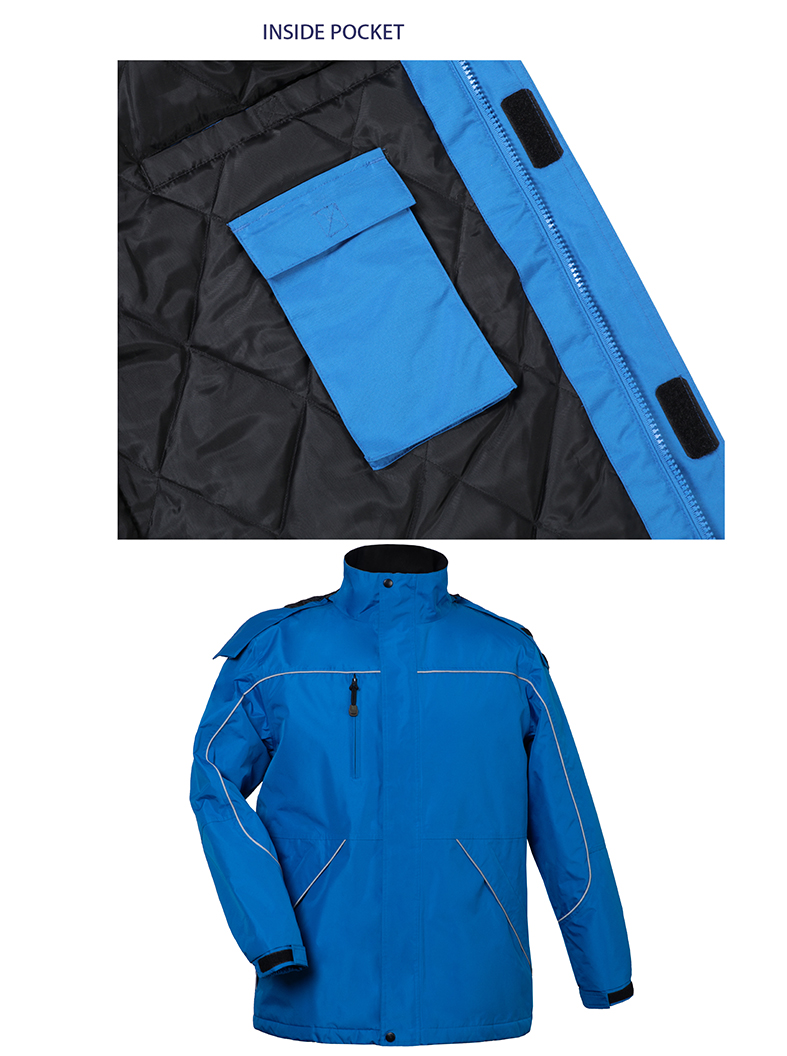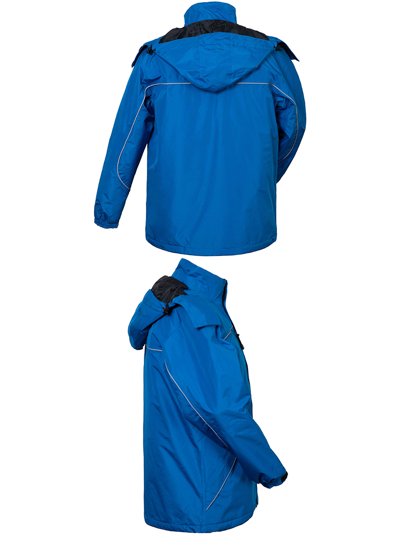 【FABRIC】100% polyester fabric with Pu coating, waterproof rating 5000 mm, lined with quilted padding.
