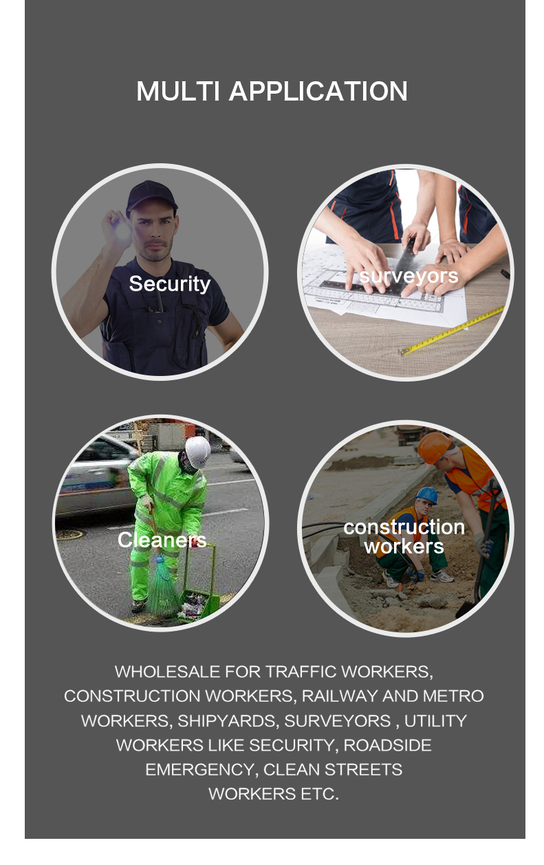 【360°REFLECTIVITY】 2-inch wide highly reflective strips around the body and sleeves, providing a 360 degree of high reflection in daylight or low light environment.