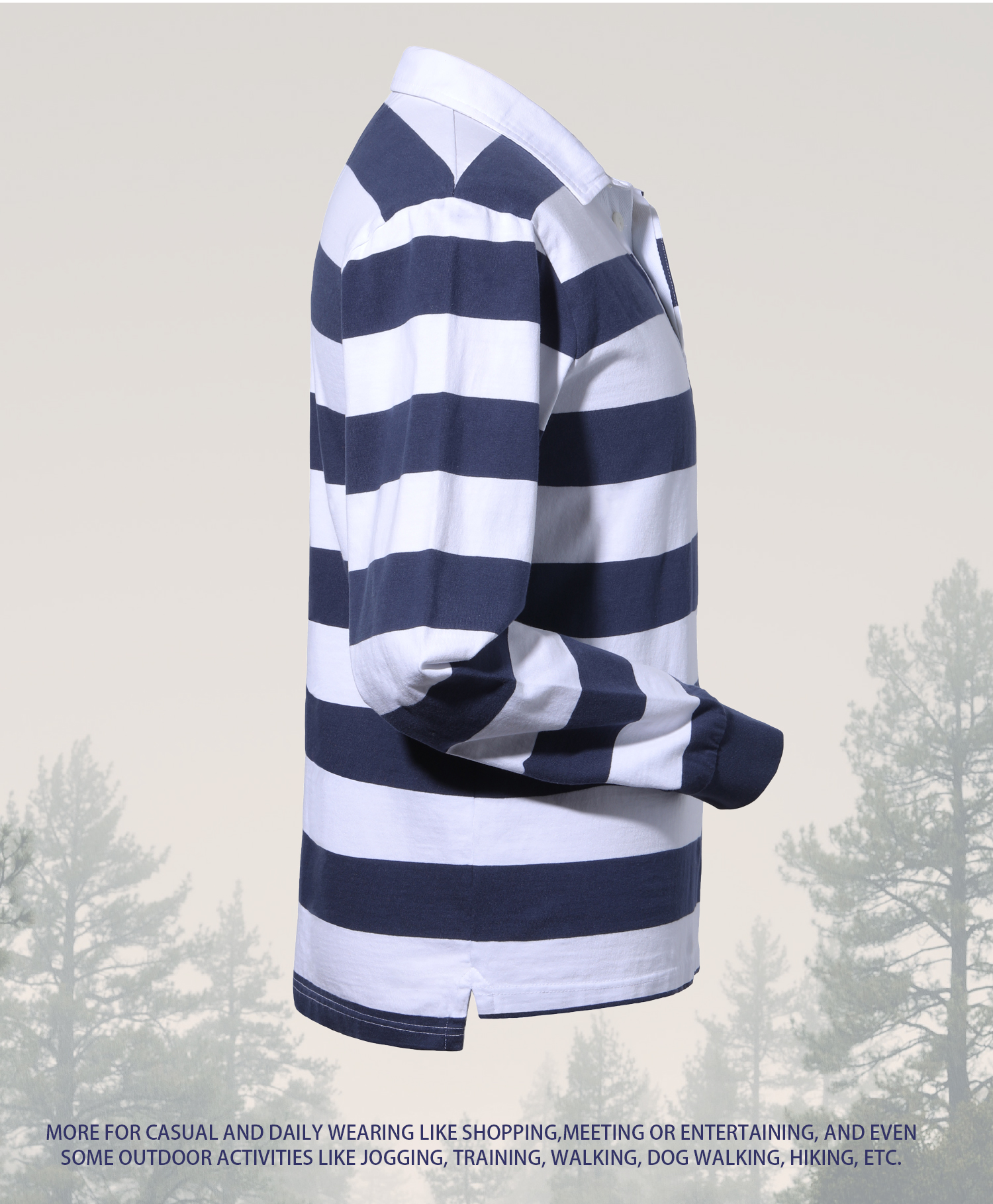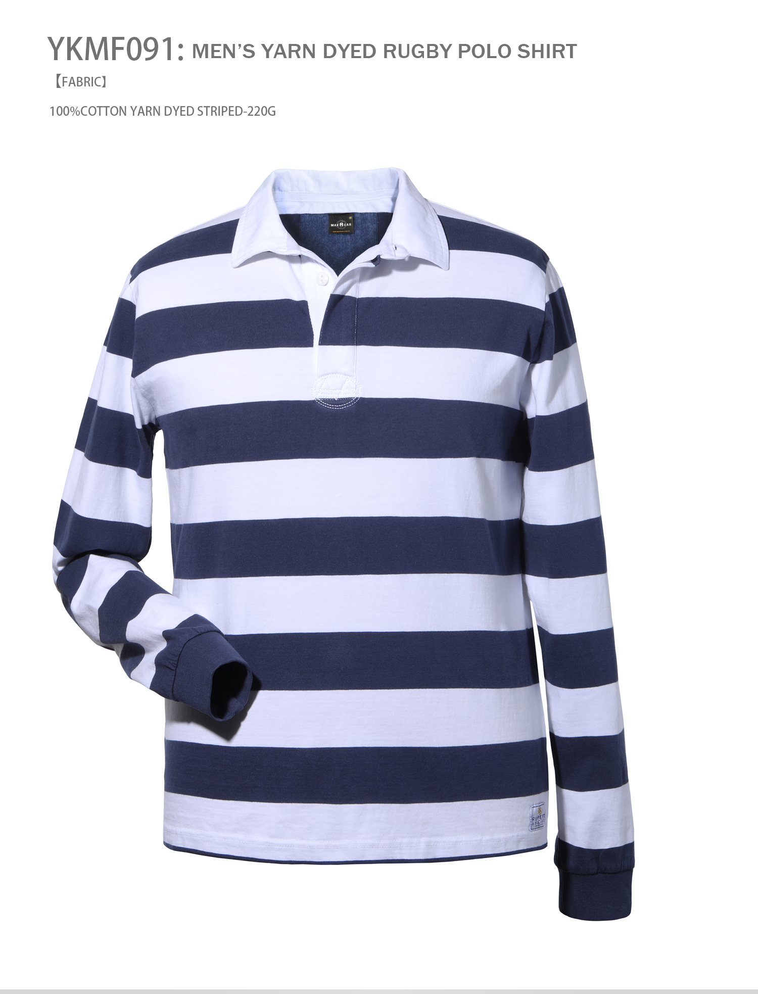 【 FABRIC】100%cotton-220grm, yarn-dyed engineered strip L/S rugby polo