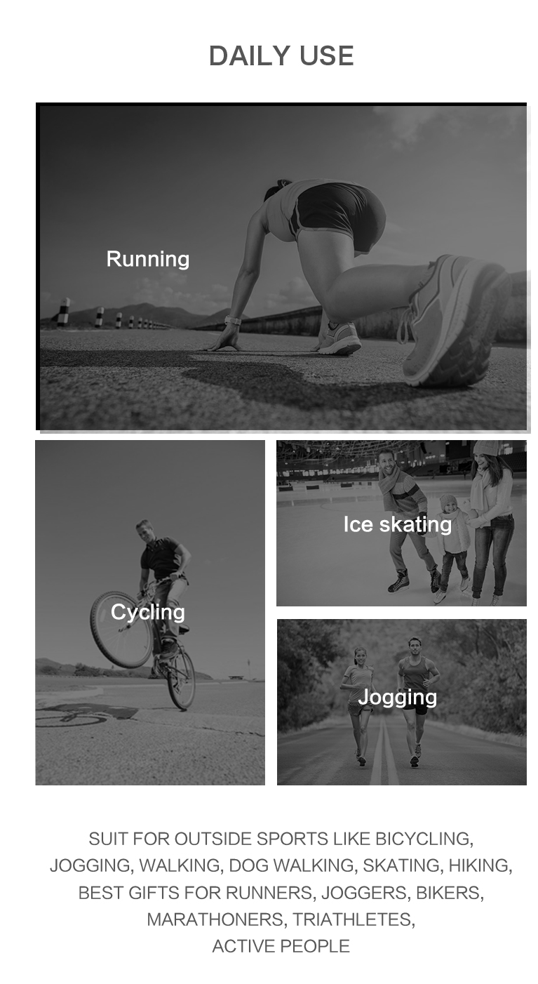 【DAILY USE】Suit for outside sports like bicycling, jogging, walking ,dog walking, skating, Hiking, Best Gifts for Runners,Joggers,Bikers,Marathoners, Triathletes, active people.