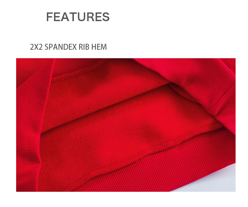 【FEATURES】Hoodie sweat with hood linning, Spandex rib hem on sleeve opening and cuff hem