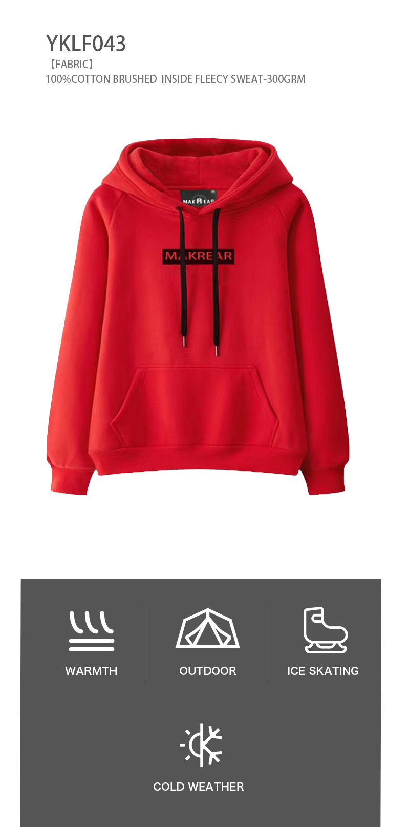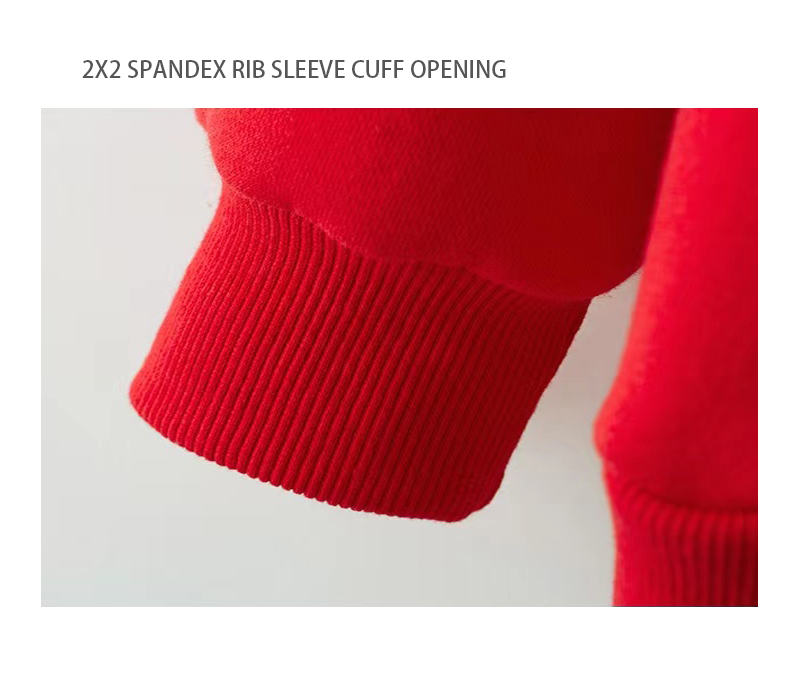 【FEATURES】Hoodie sweat with hood linning, Spandex rib hem on sleeve opening and cuff hem