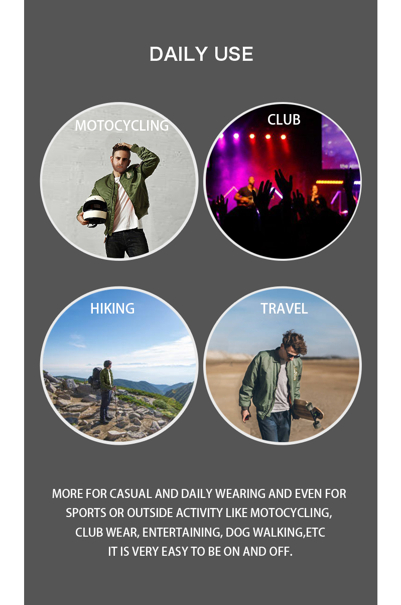 【DAILY USE】More for casual and daily wearing and even for sports or outside activity like motocycling, walking, club wear, entertaining, dog walking etc. It's very easy to be on and off